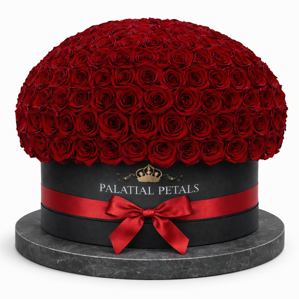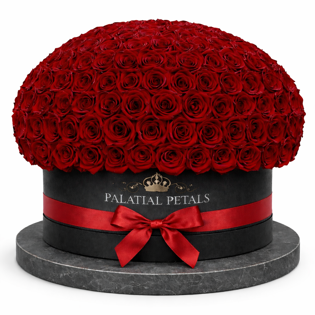 Experience the pinnacle of preserved floral design with our Deluxe Dome — a lavish round arrangement featuring 250 premium Ecuadorian preserved roses, carefully set in our signature soft-touch hat box. Designed for impact and opulence, this dome-shaped arrangement offers a breathtaking expression of love, celebration, or elevated décor.